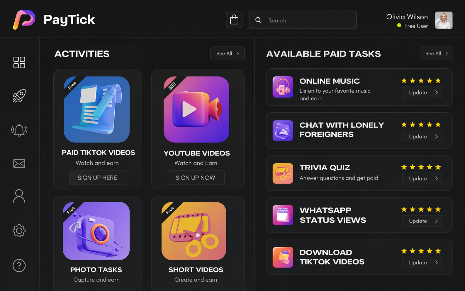 Payvic is a premium platform that allows Active users to earn money online through various activities such as watching tiktok videos, watching YouTube videos, answering trivia questions, watching paid movies, with lonely foreigners, downloading tiktok videos, streaming music online and paid WhatsApp status views.